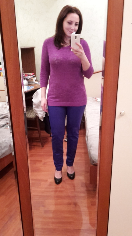 к брюкам подходят короткие свитера на выпуск или рубашка заправленная, но с припуском