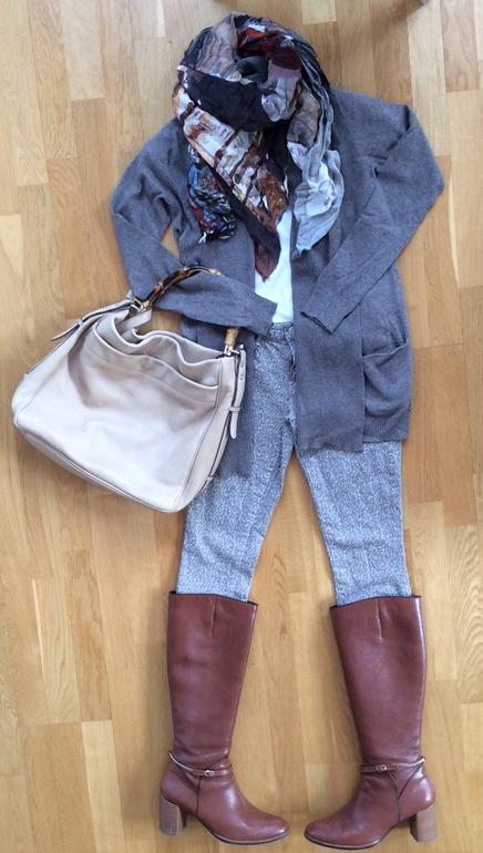 Сложно представить погоду,при которой будет комфортно в таком комплекте. Кардиган тонкий, а сапоги теплые и тяжелые какие-то. Вы так уже одевались?