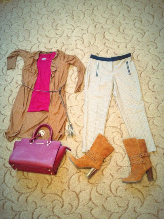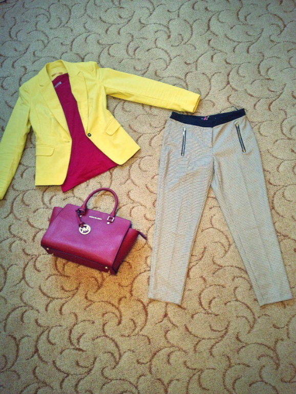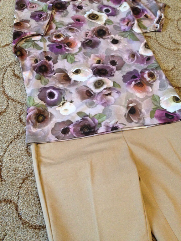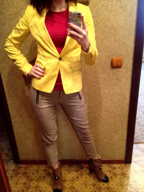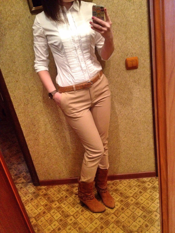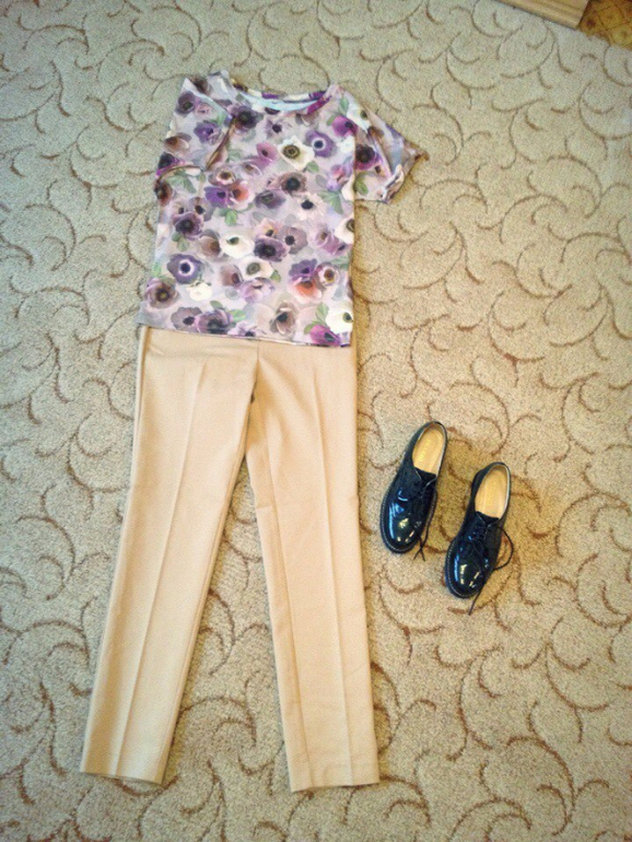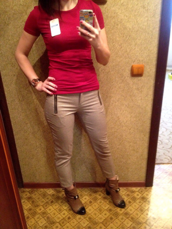 Штаны взяла в Кире по хорошей скидке. На обувь не смотрите - она сюда не в кассу, знаю. Планирую бежевые лодочки носить, но они на работе.
