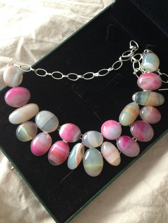 Сходила в театр и положила в коробку, которое шло с колье. Убрала в шкаф и больше повода не было - лето, потом дети болели.