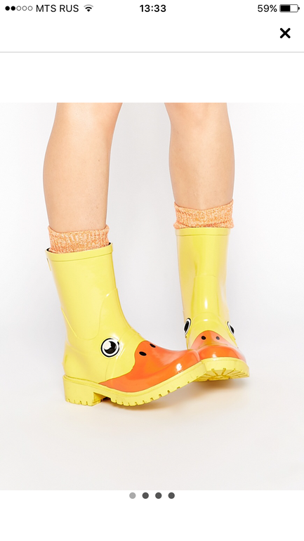 Я схожу с ума, у меня есть нормальные рейнбутс.. Но эти утки😂😂😂 и я их представила с таким расклешенным плащем, ну таким желтым или зеленым, с капюшоном из клеенки... Ну блин)) как такие называются?) дождевики?ViVi