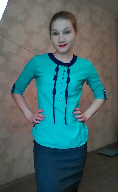 В реале ярко зеленая блузка.Нужна или нет? Может носить не на выпуск?