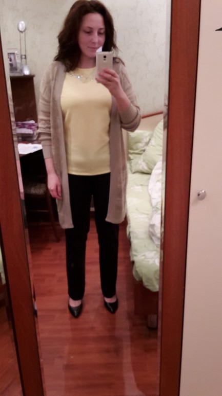 Из всего понравилось синее платье оно со всем сочетается, желтая кофточка сама по себе плохо сидит и подчеркивает складки на спине и животе, а вот в тандеме с жакетами заиграла и отлично дополнила!!!