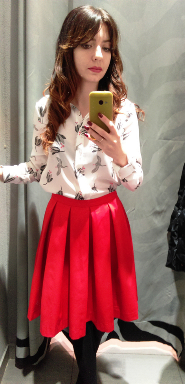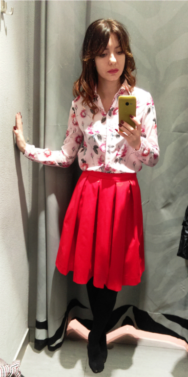 Юбка красная по цвету и фасону нравится, но блин, мнется сильно как мне кажется...