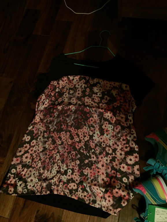Топ с шелковым передом и однотонный черный сзади, около 400 руб, планирую с четными брюками его носить или с юбкой карандаш.