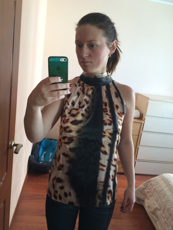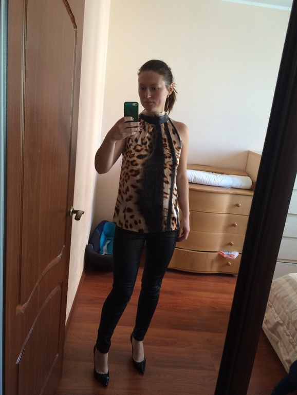 Оставила леопарда. Даже не представляю, что нужно надеть, чтобы мою немерено длинную шею заставить исчезнуть)) это неумение делать селфи её отрубило))) она и во втором варианте короче оригинала)) про лифчик такой ниже посоветовали, куплю, спасибо!