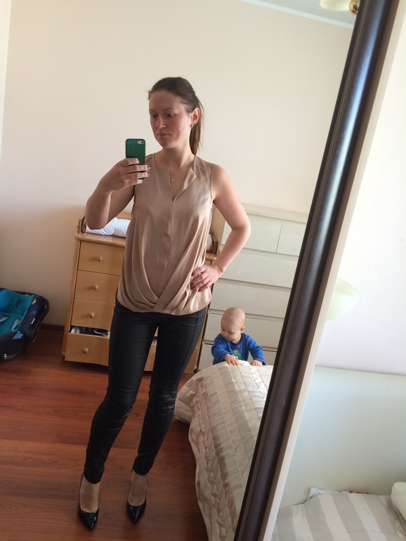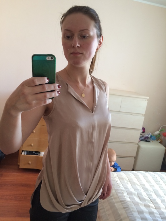 Ох, помню ваши комментарии про живот, фигуру и так далее. А тут смотрю фото - вы хрупкая и стройная))) Топ больше беж понравился