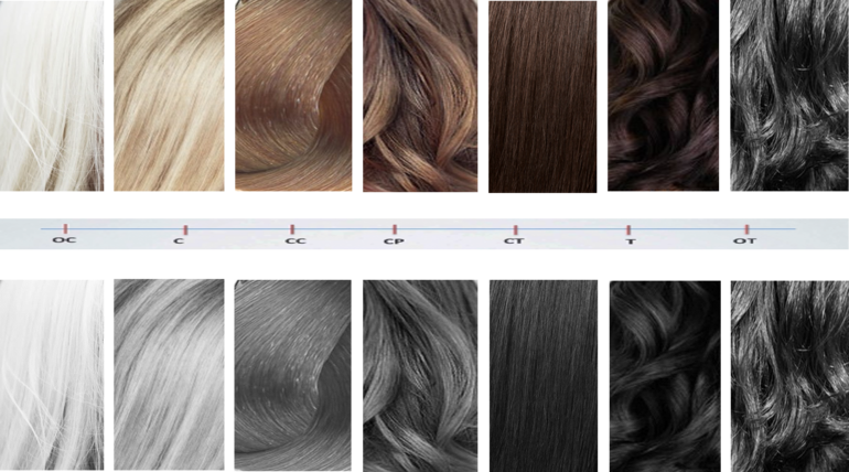 Очень светлая, светлая, средне светлая, средняя, средне темная, темная, очень темная
