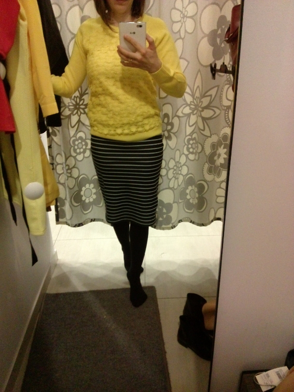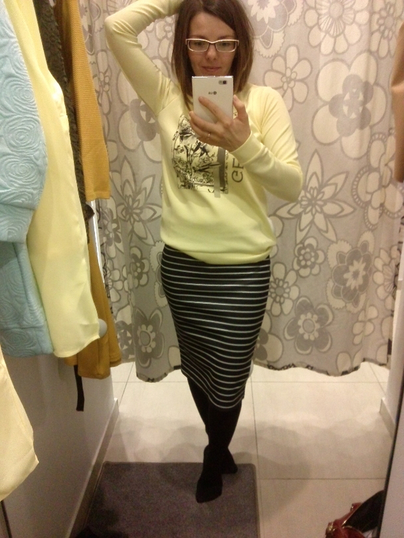 но мне понравился образ юбка полосатая и желтая кофтейка
