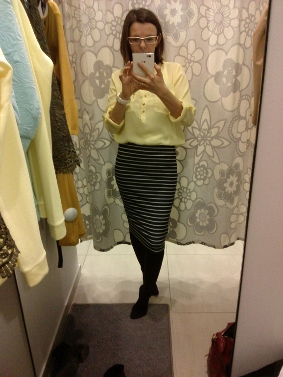 первая желтая кофточка ничо так. смущает лишь рисунок. блузу белую или жемчужно-розовую попробовать бы, если это не синтетика. а последний образ очень интересный!