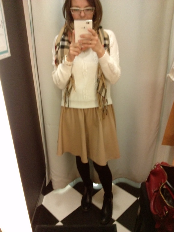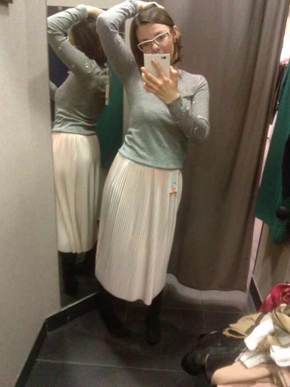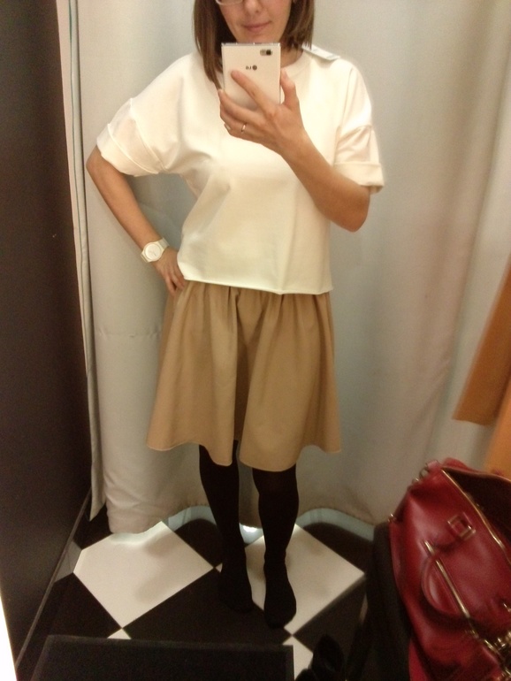 ОдеждаСейчас редко удается выбраться по магазинам( и вот мне счастье! Выбор магазинов был не очень. Я стала очень придирчивая, почти ничего не купила. Ботинки в хм коричневые и темносиний свитер в зарине 100% шерсть)) И да да да мерила ту самую юбочку) кстати как она на мне на коротышке?