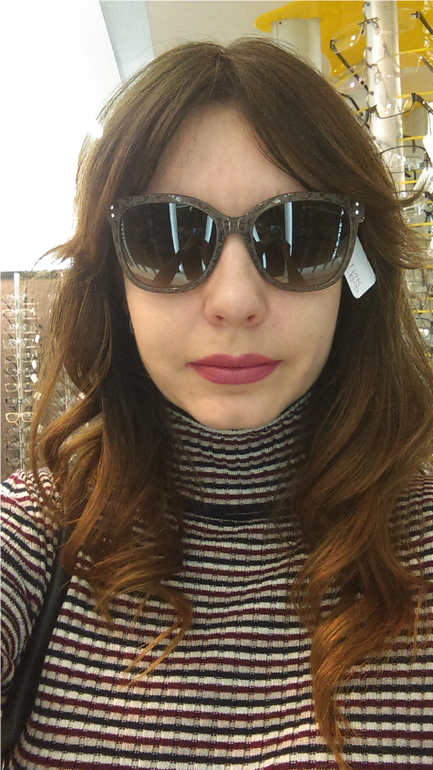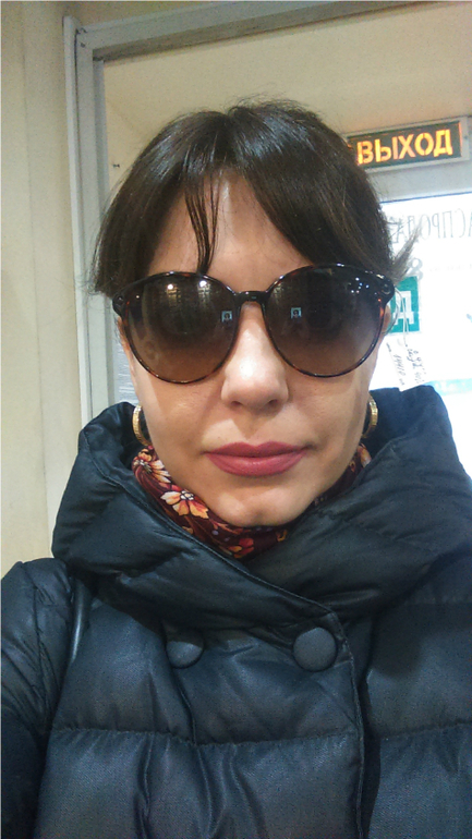 Вы их слишком высоко одеваете, закрыты полностью брови, не совсем информативно. Ну, а если так, то ещё лучше поискать, вы яркая, уверенна просто не встретили свои очки, время есть.