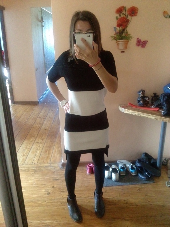 платье мне не очень, если честно. немного провисает по спине + корректирующее белье. я бы облагородила чем-нибудь красным на шею и туфли или сумку.