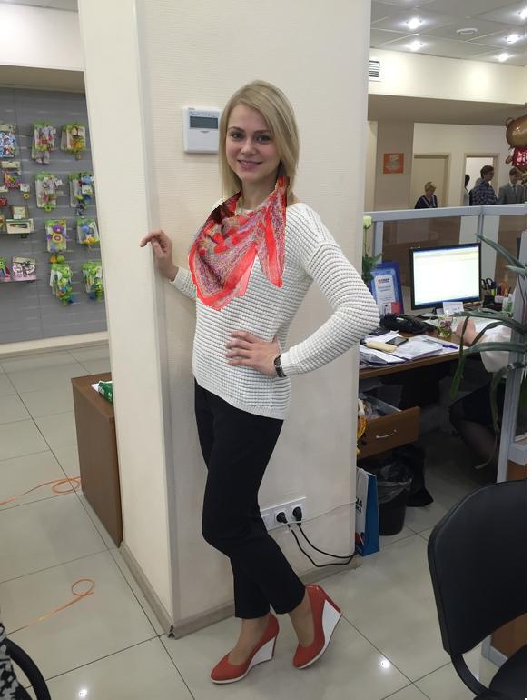 Добавила бы шарфик в цвет туфель. Хотя, если чесно, я не ношу и не люблю акси на себе, типа шарфиков и брошек