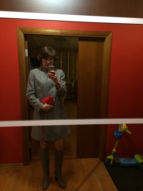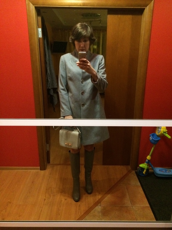 пальто сапоги и сумочка тоже серенькая-новая