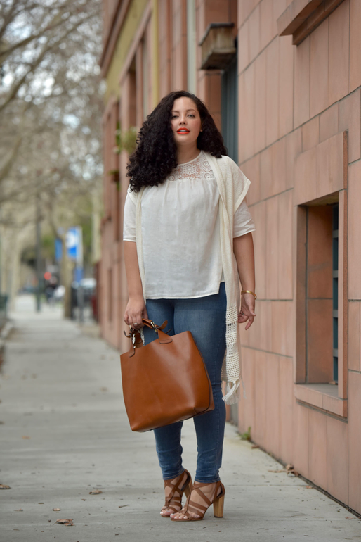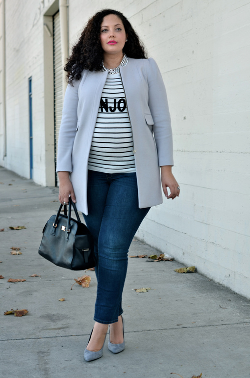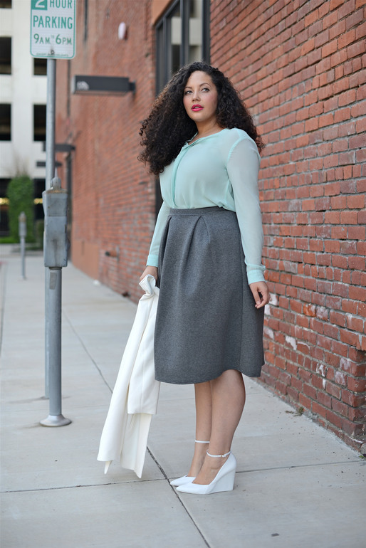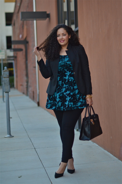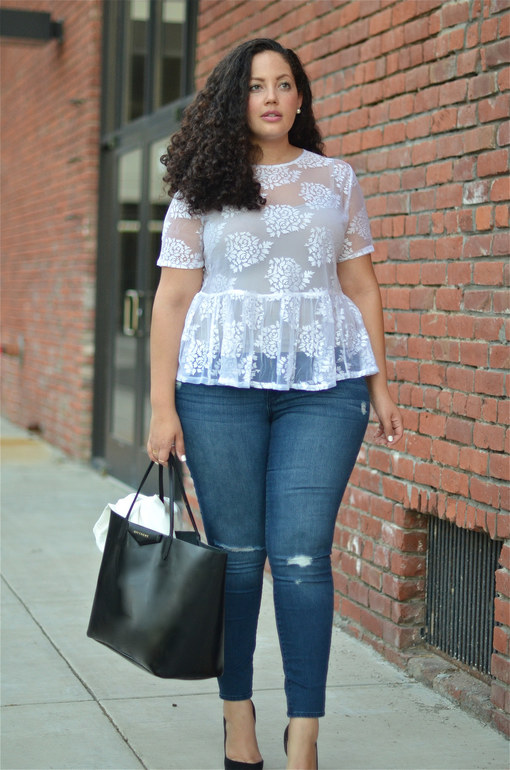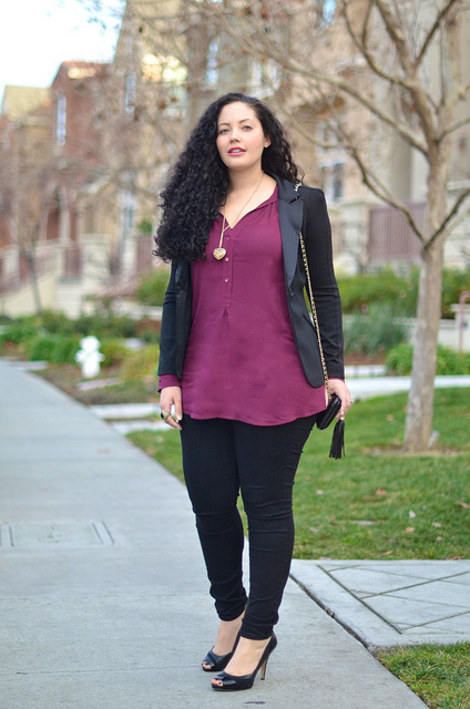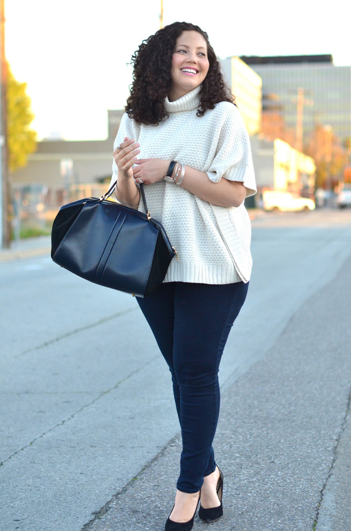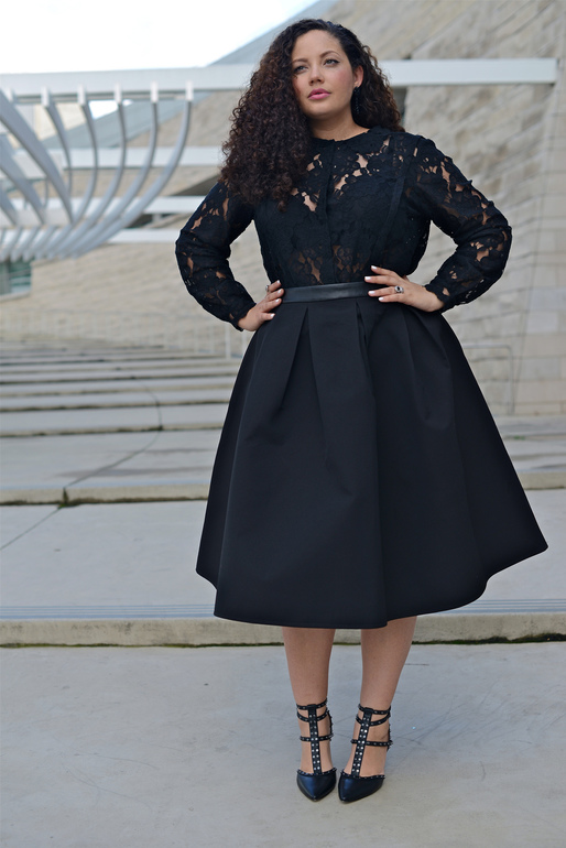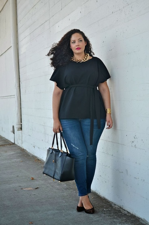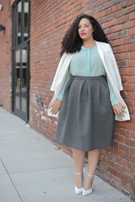 Вот здесь, мне кадется, что ее плюс сайз только украшает) была бы она худой - еще 500й фэшнблоггер))