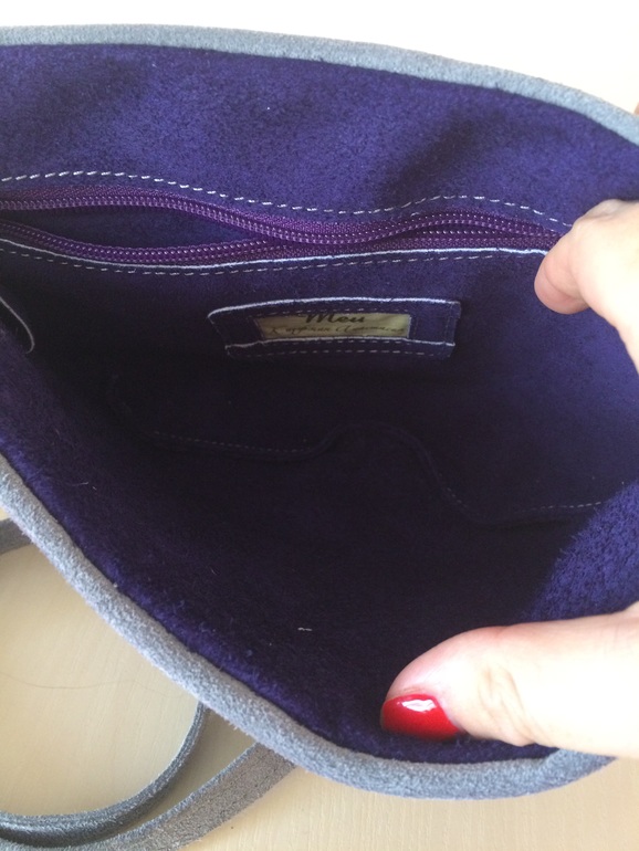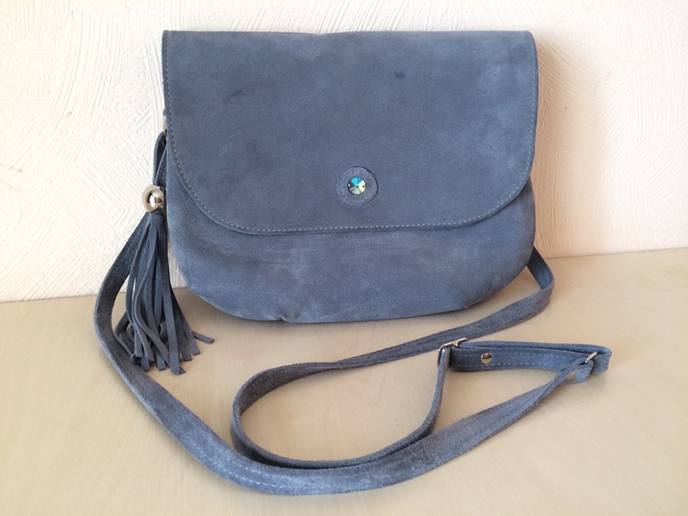 Вот эта моя любимица. Замша, нежная-нежная. Изначально была коричневая, с золотой фурнитурой, на цепочке. Я попросила серую, с серебряной, на ремешке. Шутку про перламутровые пуговицы опущу))) Через неделю сумка ко мне полетела)