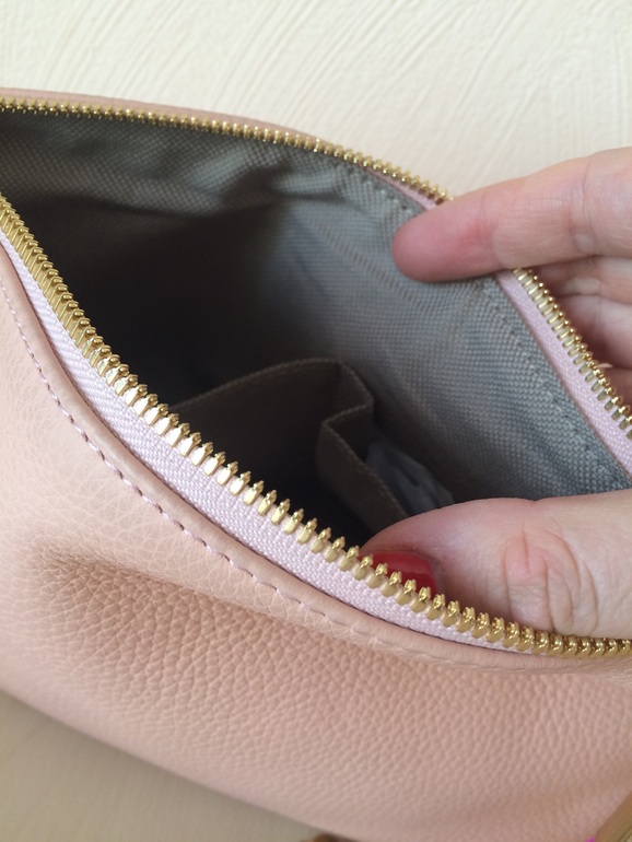 Вторая пудровая, побольше. уже начала пачкаться с угла(( вторая из такой кожи и вторая быстро пачкается. Мыть пока не пробовала. Качество пошива отличное, но подкладку хотелось бы "подороже", очень простая. По моей просьбе отдельно сделали нейтральные кисточки.