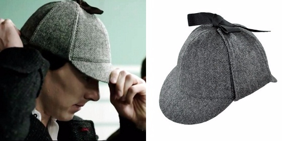 Ну, как же не упомянуть знаменитую шляпу, без которой наш персонаж не состоялся бы. Это шляпа охотника за оленями (англ. Deerstalker hat), также известная как Шляпа Шерлока Холмса - вид шляпы, которую обычно носили в сельских районах Англии, как правило, во время оленьей охоты (deerstalking), откуда и произошло её название.