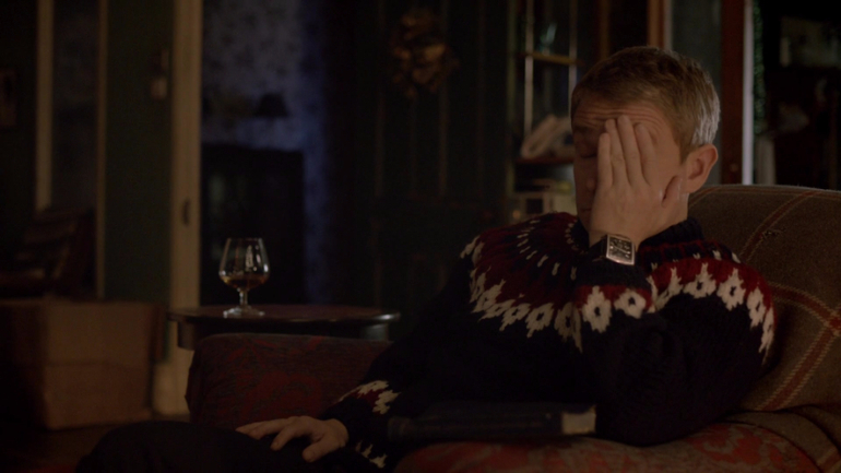 В отличии от нашего Ватсона-Соломина, который был знатный щеголь, Ватсон-Фримен одевается попроще и посовременней. Ну, а почему бы и нет.