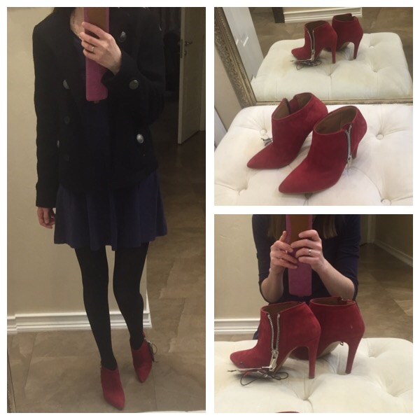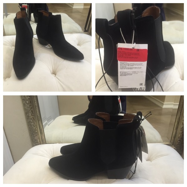 И, совершенно неожиданно в этом же Hm-е взгляд упал на полку с распродажной обувью, хотя никогда не рассматривала всерьез эту марку в плане туфлей-ботинок, всегда казалось, что в эйчэме она исключительно из полиуретана и искусственной кожи. Но тут я увидела перед собой абсолютно натуральную изнутри и снаружи обувь прекрасного качества. Выбора из распродажи уже вообще не было, но каким-то чудом в ходовом 38 размере там оказались обалденные красные ботильоны из замши, мягчайшие и очень удобные (ноги проблемные, подходит далеко не все), и полусапожки или даже ботинки опять же из замши, бегунки на каждый день. Обе пары немного с непривычным носом, особенно черные, но за такие деньги решила попробовать. Всего 1500 красные и 1000 черные, просто праздник какой-то, повторюсь, все натуральное.