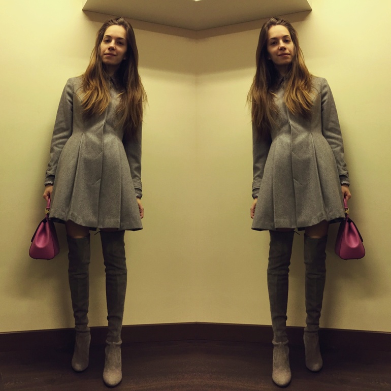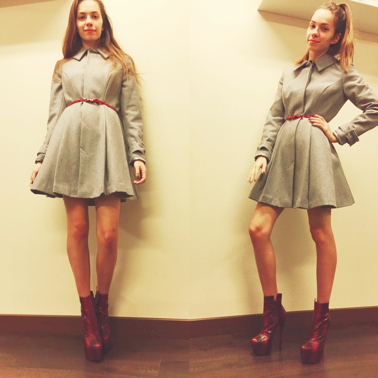 Еще приехало серое пальто, которое я вылавливала долго и упорно.. Ну что... Дурацкое оно! Тяжеелое, рукава нереальной длины, кажется, что велико мне, хотя размер мой.. С клетчатым и бордовым небо и земля! А задумывалось оно к вейцманам