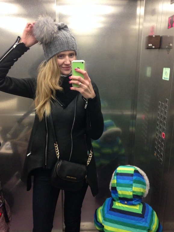 Мало того, эта сумка ни к чему не подходит в моем гардеробе. Сейчас я убиваю на износ свою любимую вещь этой зимы - дубленку из матовой кожи Anne Vest. Мне удобно с ней таскать - кроссбоди МК, хотя цвет фурнитуры не дружит, но в остальном - мне нравится. С баклажаном мне не очень видок нравится. Фотки нашла на айфоне, обычно сестре фоткаю подарки мужа, на первой фотке - это шапка и шарф из Латвии, на второй - эта фурла.