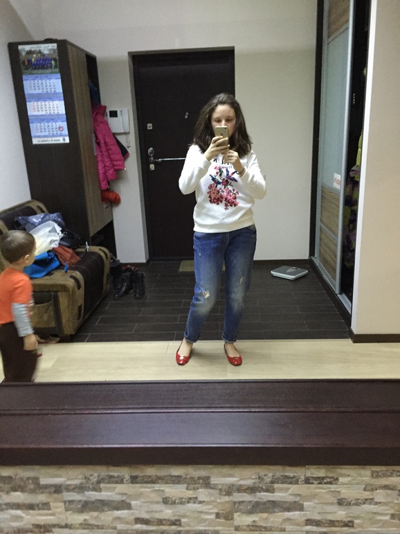 Мне нравится образ с свитшотом и джинсами (простой ежедневный, приятный), но хочется его немного вытянуть. Каблуки как раз должны помочь.