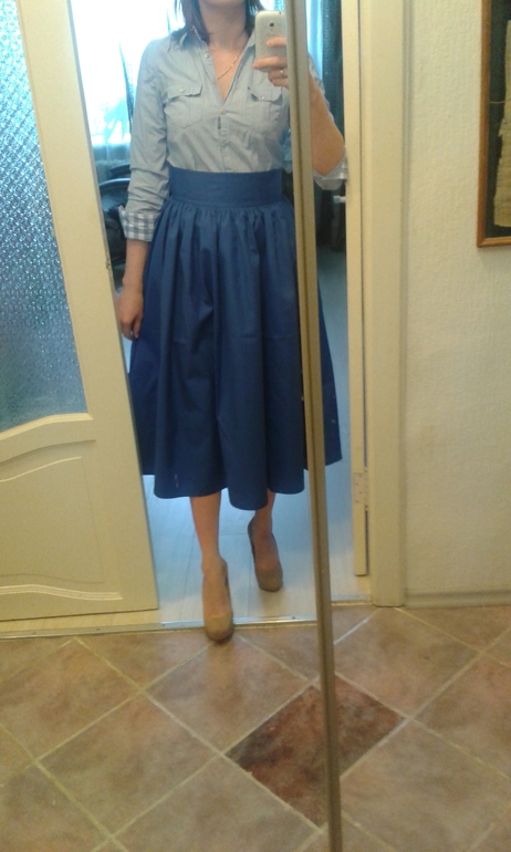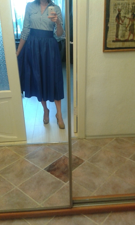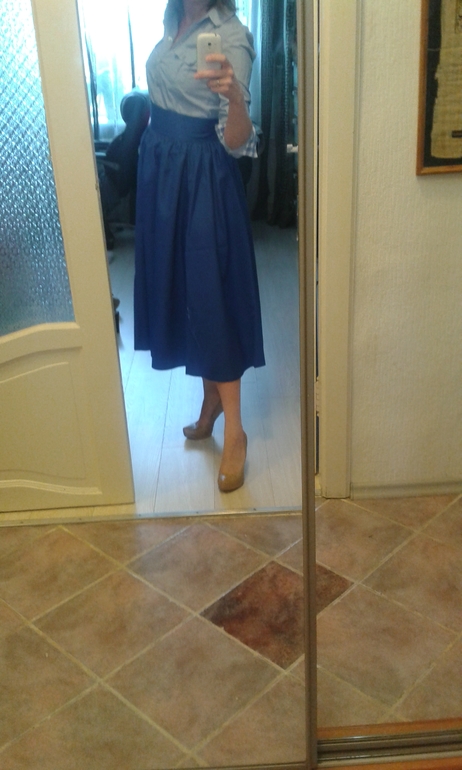 ПосоветуйтеСегодня получила посылочку с юбкой)) Юбка нравится, но с длиной пока не определюсь. Может ее укоротить до колена или так оставить?