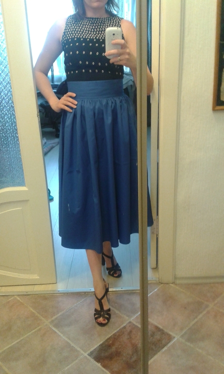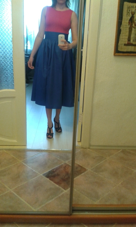 На мой взгляд, вот если бы пояс юбки был тоньше было бы лучше, а то как то фигуру вам режет, талия под мышками кажется и верх коротким кажется.