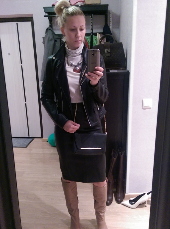 С юбкой-карандаш у меня почему-то не вяжется... Может я просто не привыкла к такому сочетанию...