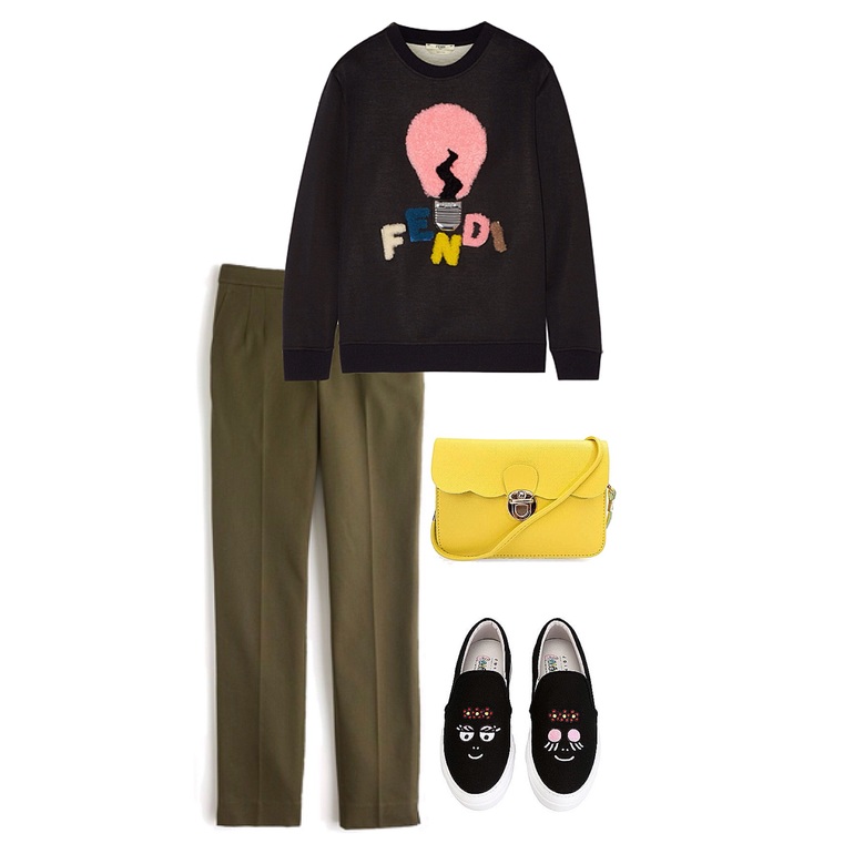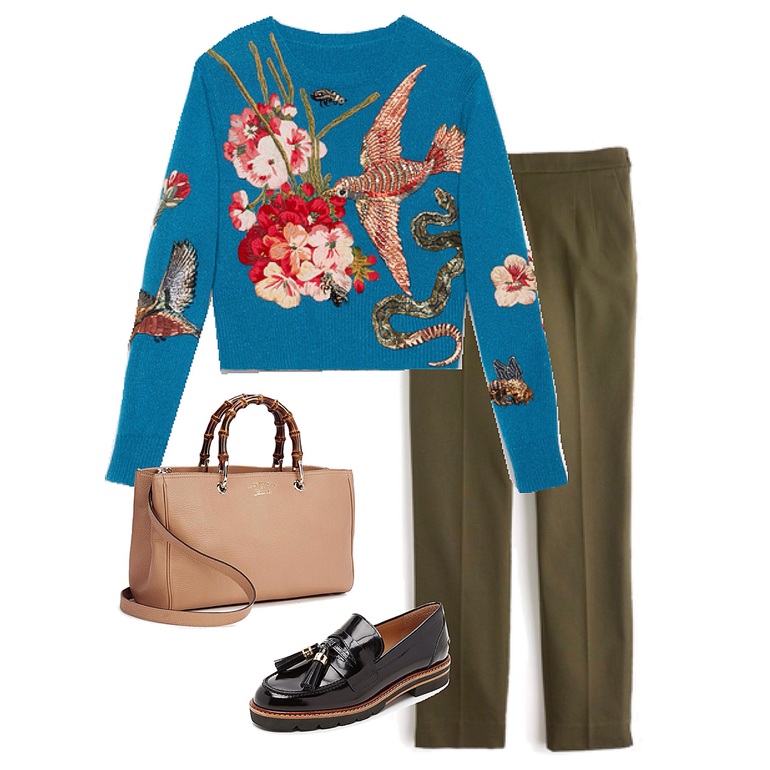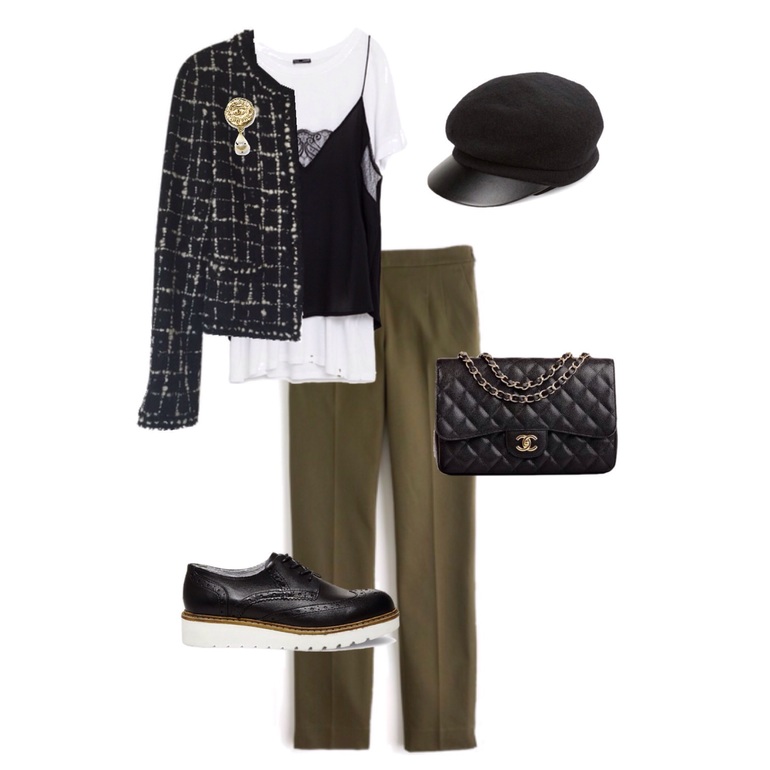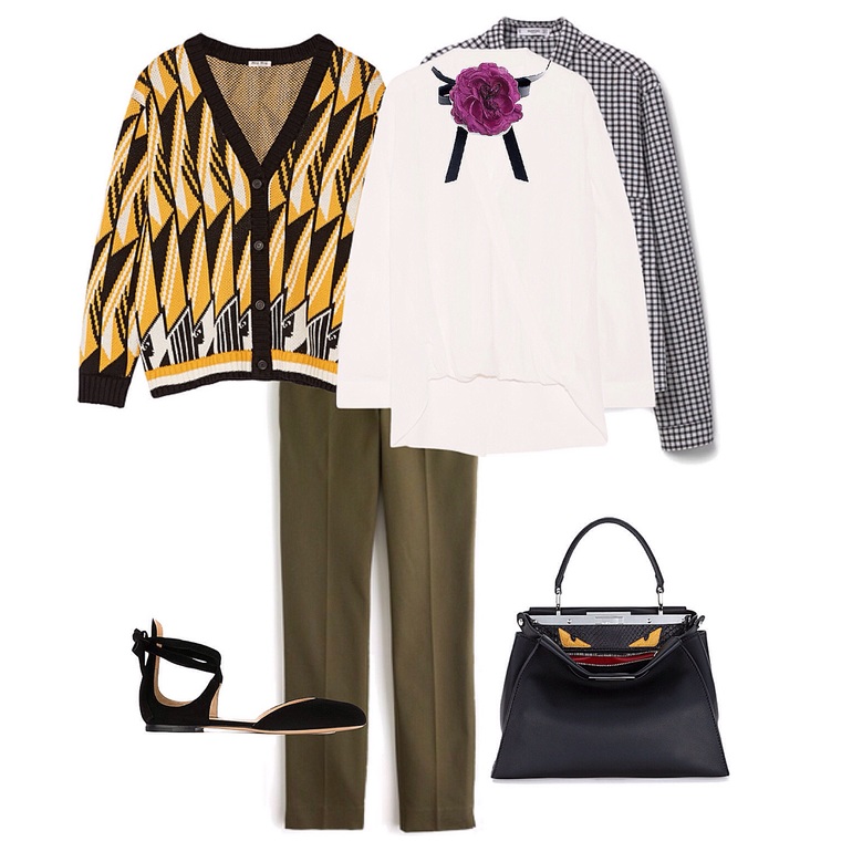 5. Низ от костюма сложнее представить, но он также хорошо комбинируется: блузки, рубашки, майки, свитшоты, свитера, джемперы, кардиганы, твидовые жакеты.