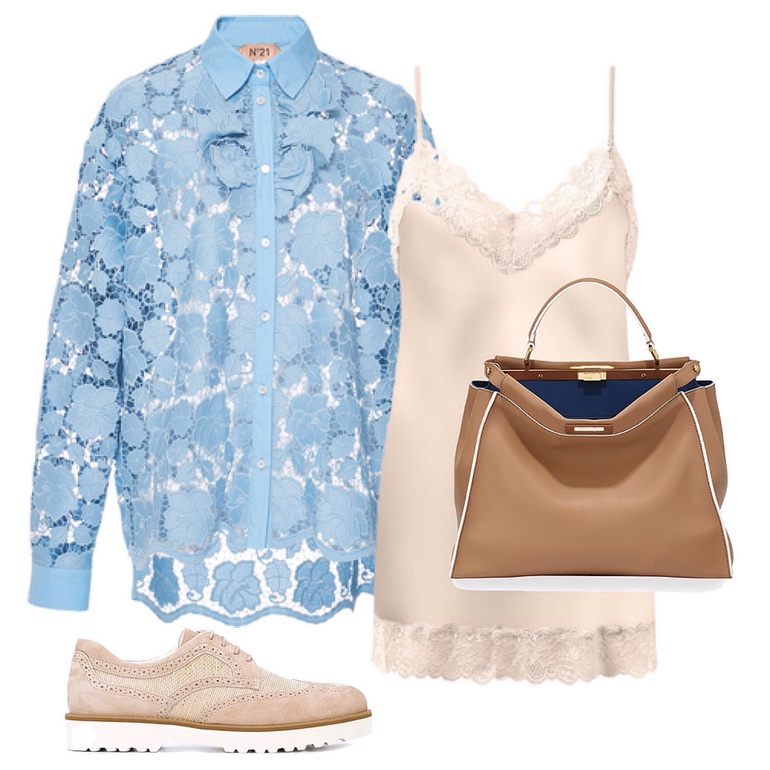 b) рубашка кружевная (можно обычную хлопковую или из вискозы) или кружевной топ
