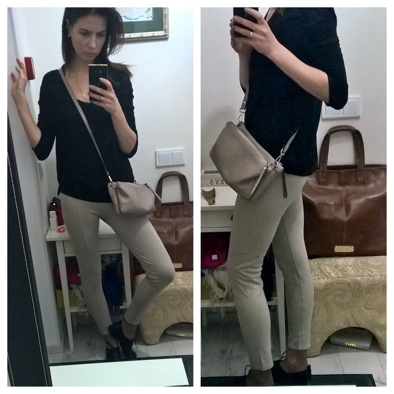 5. и еще вот такие не то штаны не то легинсы из плотного трикотажа нейтрального (т.е. никакого) цвета. с туфлями на каблуке и ботиночками на плоской подошве. Да, попы у меня нет)))