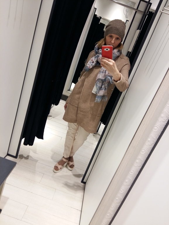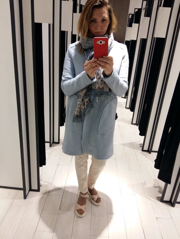 Выбираю между голубым и бежевым пальто