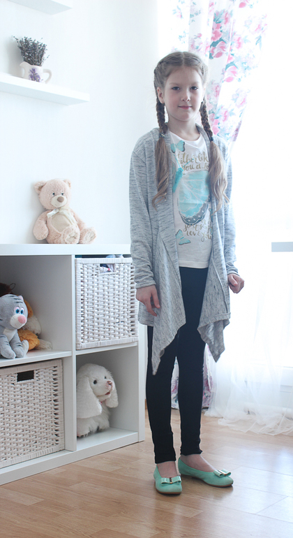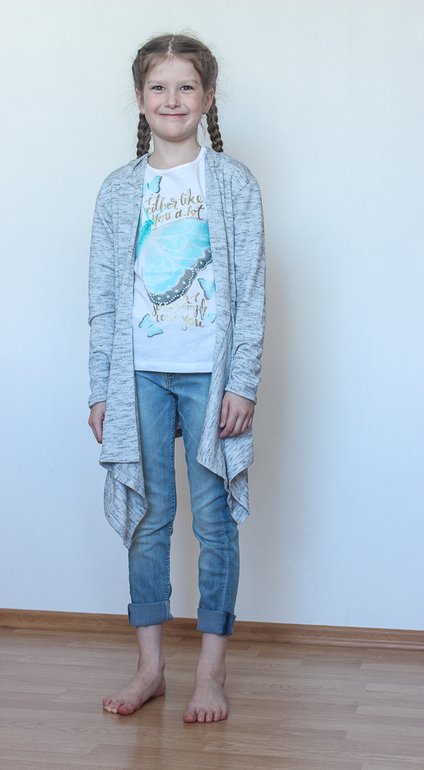 Кардиган размер 134-140,тоже великоват,нужно было брать на размер поменьше(