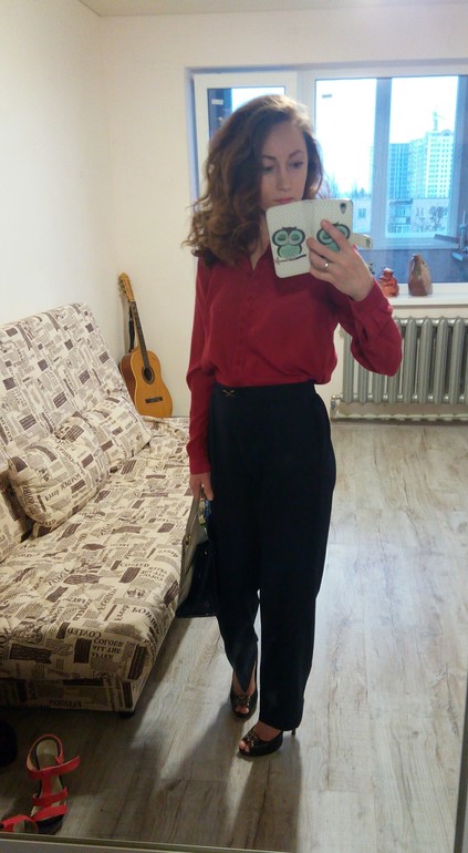 Очень понравились брюки на Вас, в особенности с красной рубашкой. Такая миниатюрность и аккуратность!