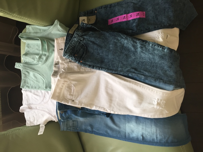 2 майки по 250р, джинсы по 1200-1500р (на фото нет еще голубых и голубой футболки, носочков и трусишек, не, ну а как не взять???))) на этом шоппинг был окончен, и мы поехали собирать чемоданы и пропустить по бокальчику в местном пабе
