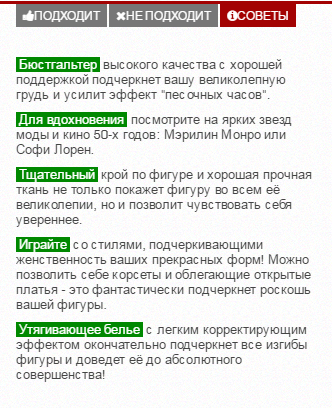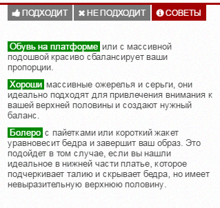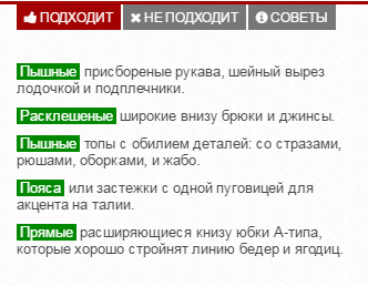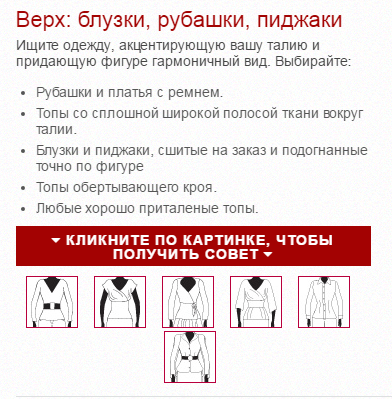 Для "ромба" - как максимально выгодно преподнести фигуру (скрыв при этом недостатки, например - животик).Итак, переходим к самостоятельному определению Вашего типа фигуры.