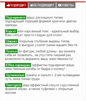 Для "песочных часов" рекомендации направлены, чтобы максимально показать фигуру