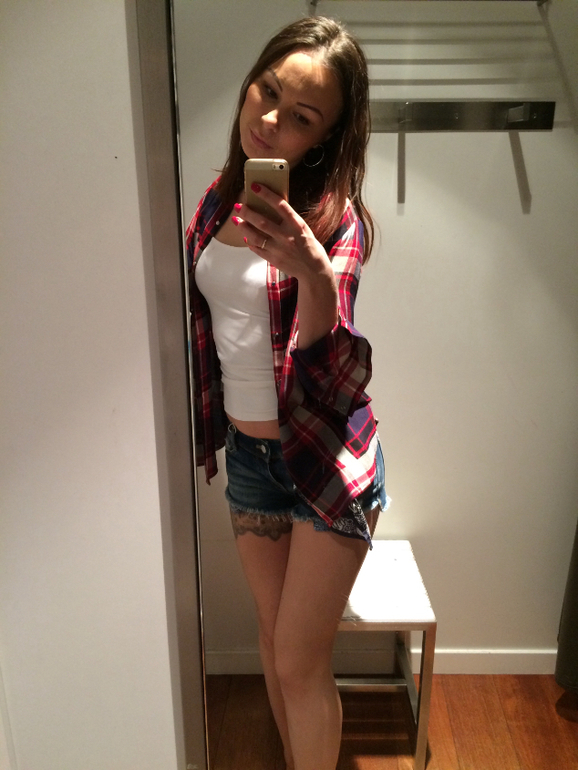 У меня такая же рубашечка)) как клево с шортиками получилось!! А я думала вернуть ее в магаз))