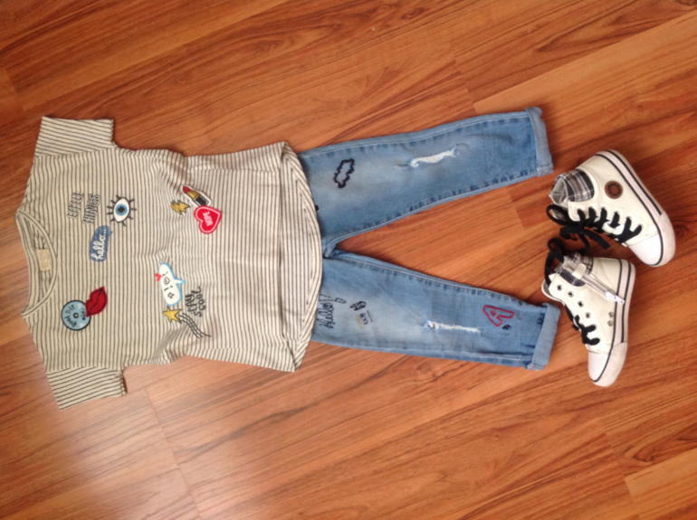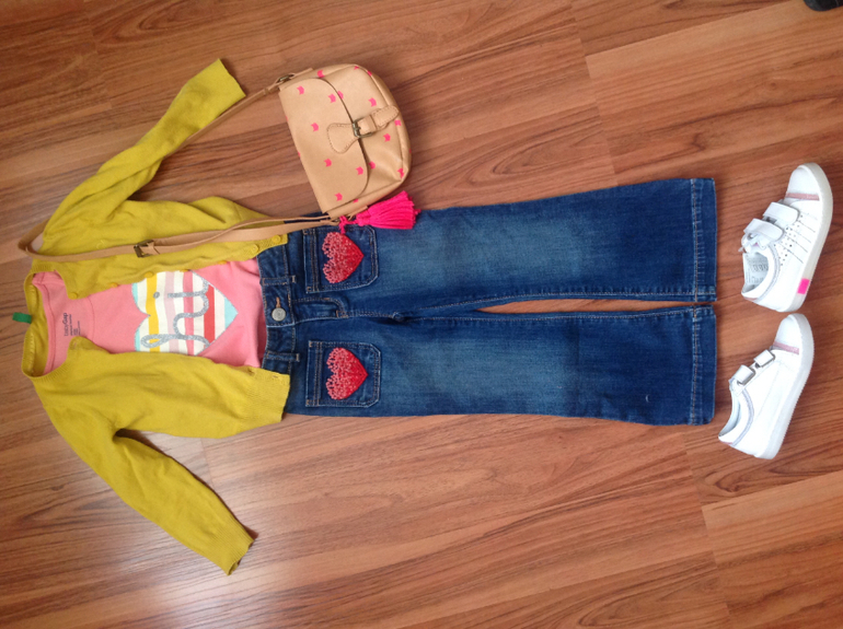 Здорово так всё подобрано!!!Ваша малышка в тренде(джинсы клёш бесподобны)!