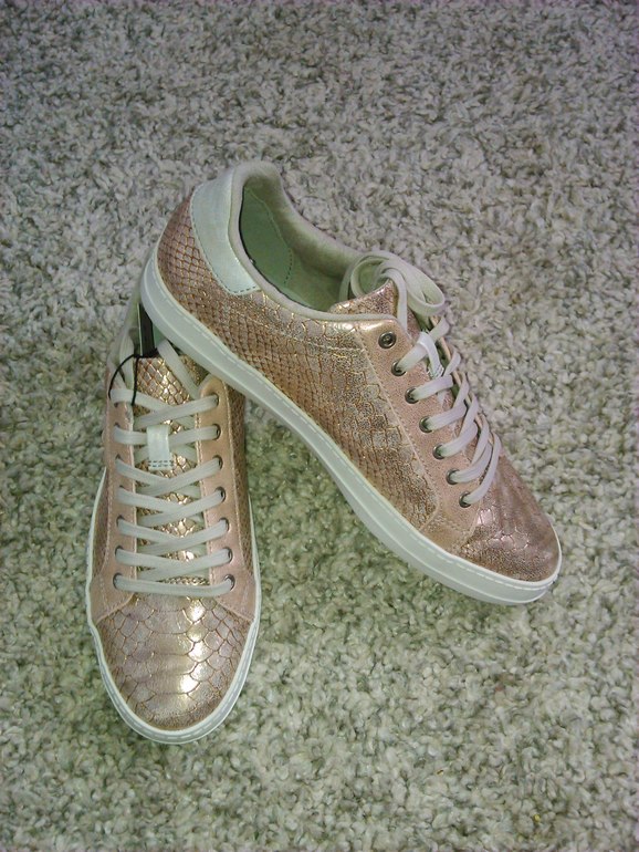 ОбувьДобрый день, девушки! Часто читаю это сообщество,но за вопросом обращаюсь впервые. Приехали ко мне кеды, все нравится, единственное, смущает золотой блеск, не слишком сильно блестят? не буду выглядеть, как сорока?