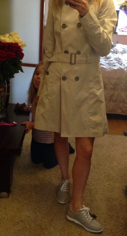 Видимо, такая мода обошла меня стороной: кроссы к плащу.... Подберите удобные туфли. Какую сумку? Никакую. Классика не подает из-за обуви, рюкзак - из-за плаща.