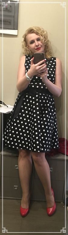 Крутая и даже роковая!!!! Так носить платье в горох надо уметь ;)очень вдохновил ваш образ!