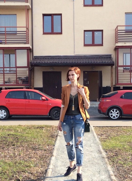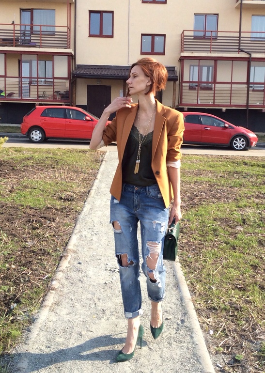 Это где так тепло уже?! Рваные джинсы не люблю, только мое мнение, сочетание джинсы и лодочки очень люблю. Ваши туфли прям бомба цвет потрясный. Вам очень идет
