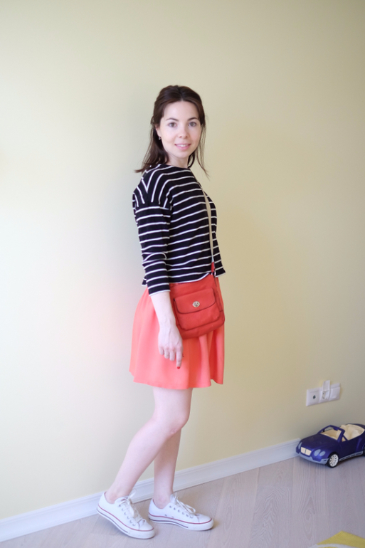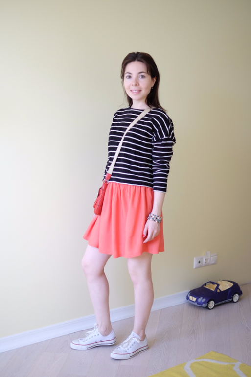 Следующим элементом "спасения" была моя юбка, которая мало кому понравилась из предыдущего моего обзора с покупками, тем не менее летом на детскую площадку вместе с объемной тельняшкой и кедами, почему бы и нет? В офис не одену, не переживайте...