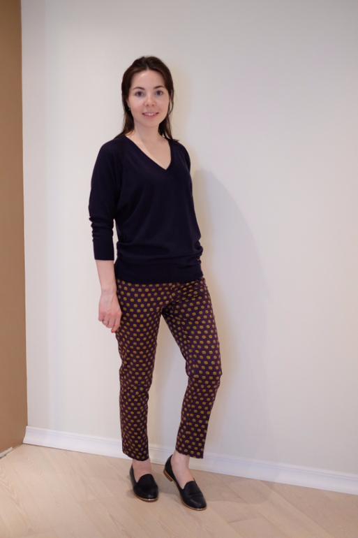 Очень сложные, на мой взгляд, брюки, под которые надо еще будет подобрать верх, а пока использовали из имеющегося наличия: