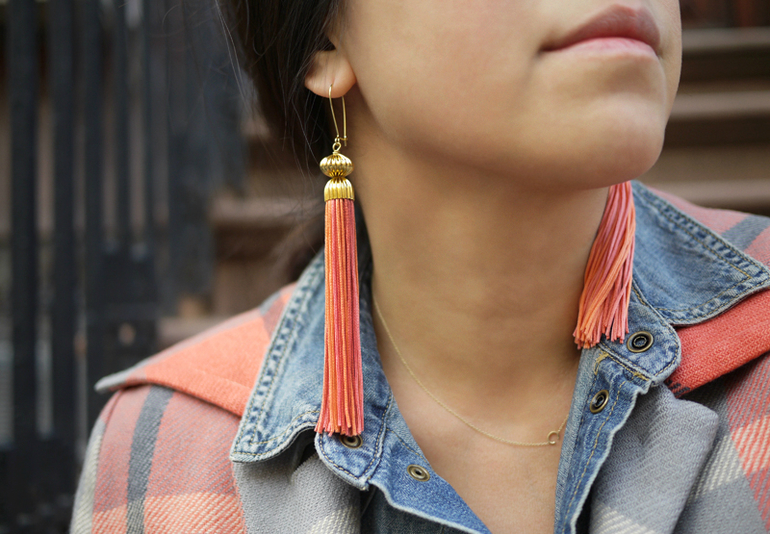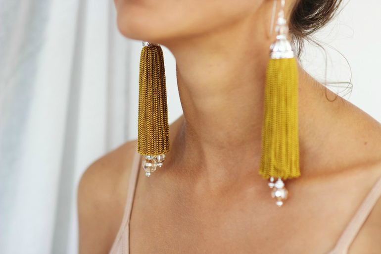 Красота, конечно! Думаю, в повседневный стиль можно вписать такие серьги. Так как они сами по себе довольно активны и привлекают внимание, одежда должна быть посдержанней. Первое, что пришло в голову: простое черное длинное платье + кисти.