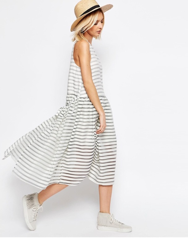 Неоправданно высокая цена за полиэстр, около 7тр, но дизайн интересен. Я бы его тоже носила с канотье и сандалиями. В)